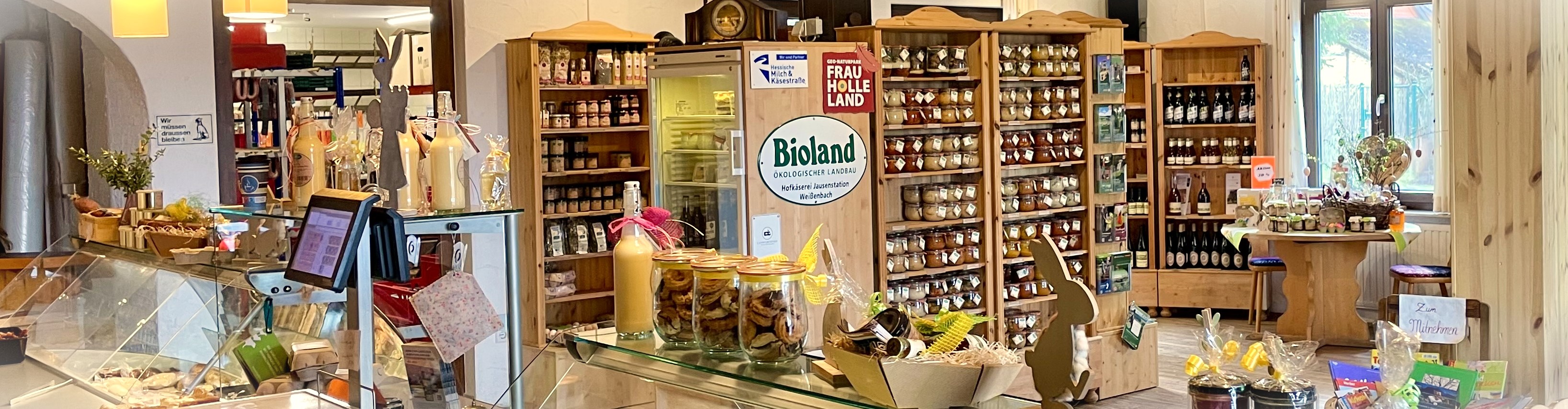 Sie lieben echte Lebensmittel, handgemacht und regional? Dann sind Sie bei uns genau richtig!In unserem Hofladen direkt ab Produktion in Großalmerode-Weißenbach erwartet Sie das volle Sortiment unserer Spezialitäten: Ahle Wurscht, eingekochte Gerichte aus Omas guter Küche, Käse aus unserer Bioland-Käserei – und vieles mehr. Beim Direktverkauf ab Hof erhalten Sie vor Ort dauerhaft 10 % Rabatt auf unsere Der-Urgeschmack-Produkte – ein Besuch lohnt sich!