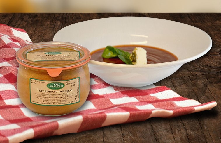 Der-Urgeschmack... Tomatencremesuppe mit Weichkäse Mozzarella-ArtEin Genuss zu jeder Jahreszeit: Unsere Tomatencremesuppe überzeugt mit fruchtigem Tomatengeschmack, feiner Würze und einer cremigen Vollmundigkeit durch unseren hausgemachten Weichkäse Mozzarella-Art. Eine Suppe, die wärmt, satt macht und dabei wunderbar leicht bleibt – genau so, wie man sie von Oma kennt.👉 Serviervorschlag: Mit frischem Baguette oder gerösteten Croûtons ein kleines Festessen.Zutaten: Gemüsebrühe (Trinkwasser, Wurzelgemüse*), Tomaten*, Bioland-Weichkäse Mozzarella-Art* (Kuhmilch, Meersalz, mikrobielles Lab), Sahne* (Kuhmilch), Zwiebeln*, Gemüse, Meersalz, Gewürze.Enthält: Sellerie, Laktose.* aus naturbelassener Landwirtschaft – ohne Brühwürfel!Der-Urgeschmack – fruchtig, cremig, ehrlich gekocht.